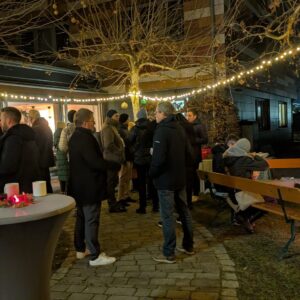 Im Anschluss nutzten die Teilnehmenden die Gelegenheit zum Austausch. Bei Bratwurstsemmeln, Glühwein und winterlicher Atmosphäre entstanden zahlreiche neue Kontakte und angeregte Gespräche.